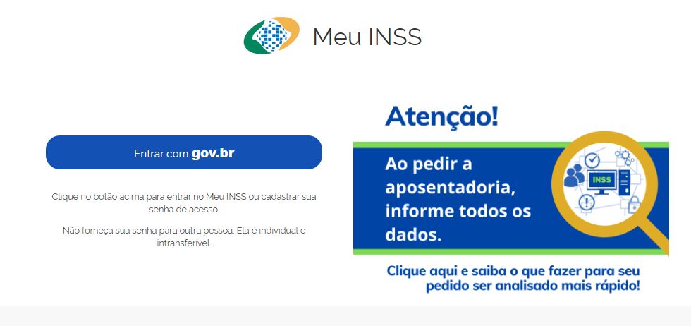 Passada as etapas, volte à página do MEU INSS e utilize seu CPF e a senha criada para entrar na plataforma.