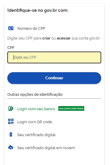 Você verá que existem outras opções para fazer o seu cadastro, como o login com seu banco, QR Code ou certificado digital. Escolha a opção que achar mais fácil.