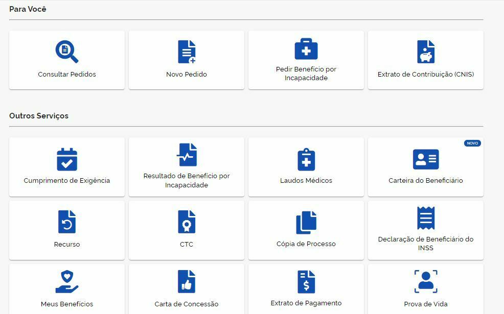 Como os benefícios por incapacidade são a principal demanda do INSS atualmente, existe uma sessão destinada só para eles. Aqui estão os seguintes serviços: